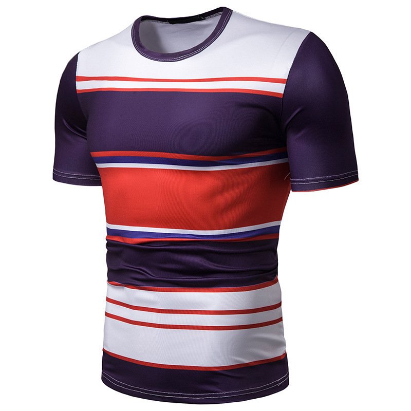 New summer men's short-sleeved T-shirt men's contrast striped slim casual t-shirt TX105